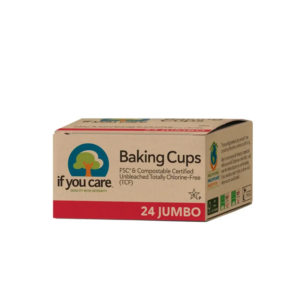 Eco-friendly jumbo baking cups that are sturdy, compostable, and perfect for your delicious homemade treats.