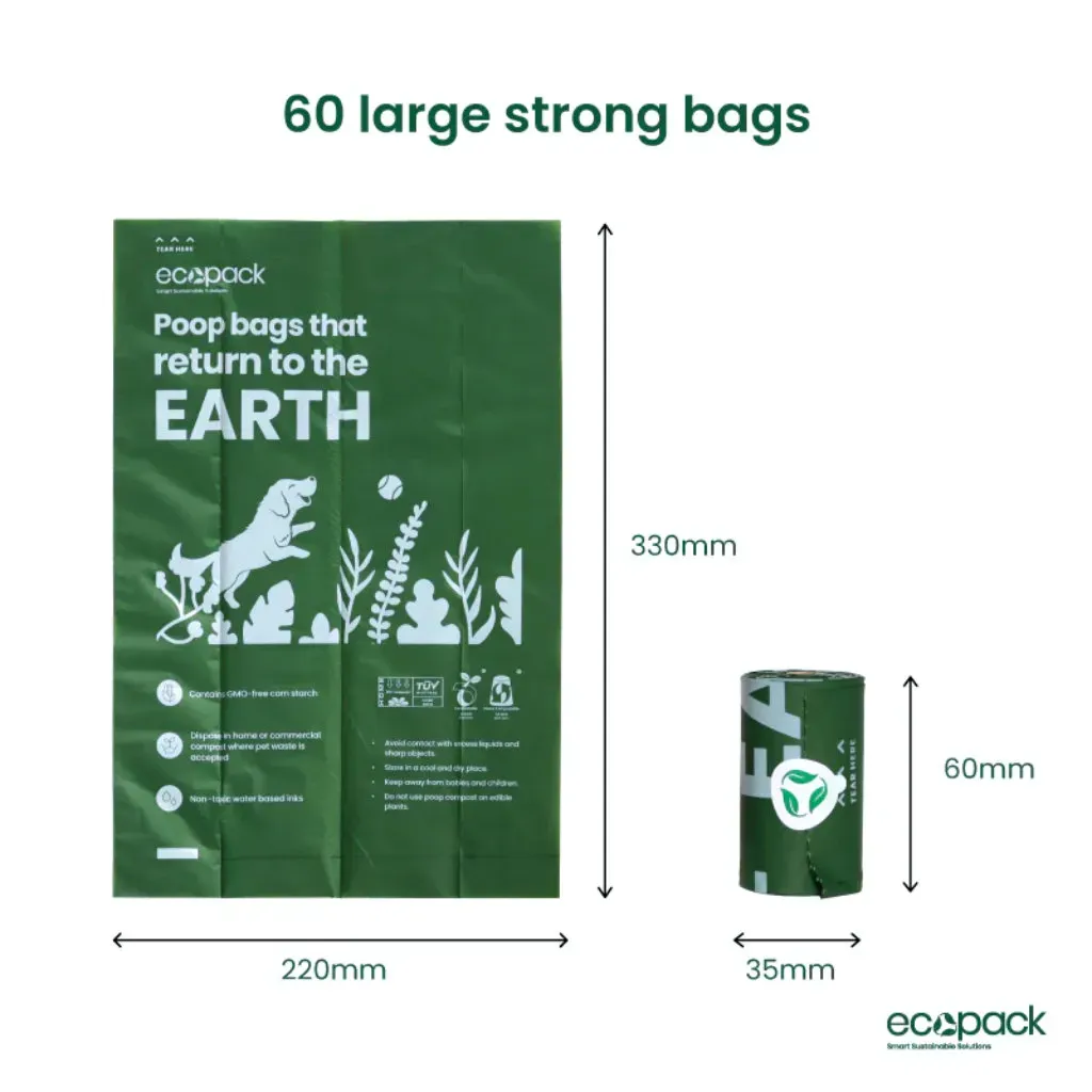 Eco-friendly compostable dog poop bags, 60-pack for easy, hygienic waste disposal on the go.