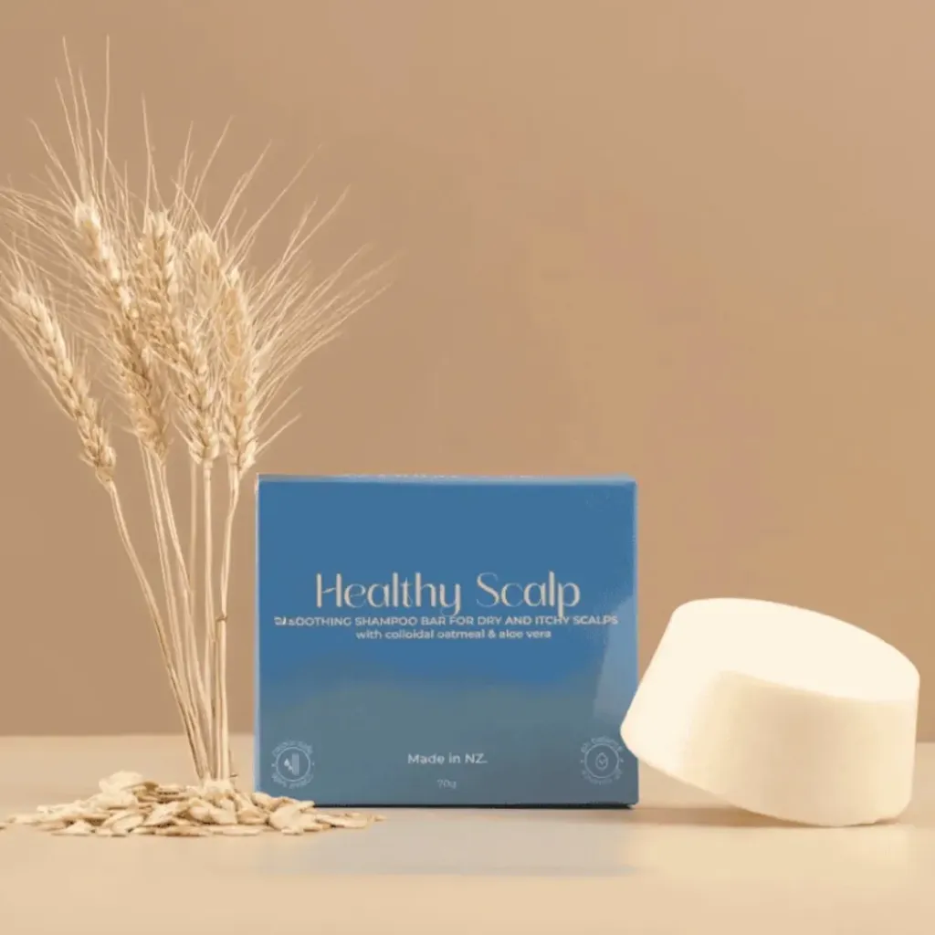 A NZ-made shampoo bar with oat protein and colloidal oats to soothe itchy scalps, reduce hair fall, and strengthen strands.