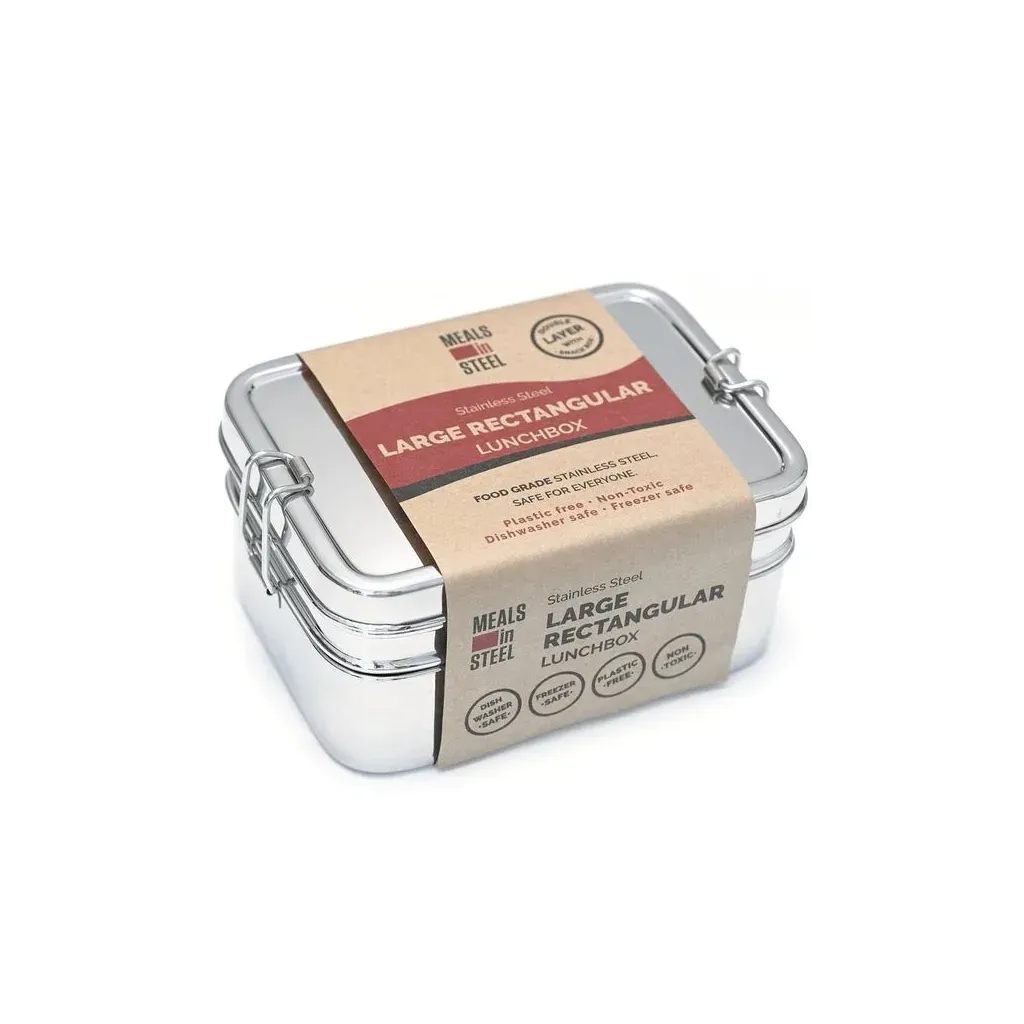 Investing in the Large Twin Layer rectangular Stainless Steel lunchbox + Snackbox means you’re getting excellent value for money. Its durable materials and timeless design ensure it will serve you well for years to come, saving you from constantly buying cheap, disposable containers.