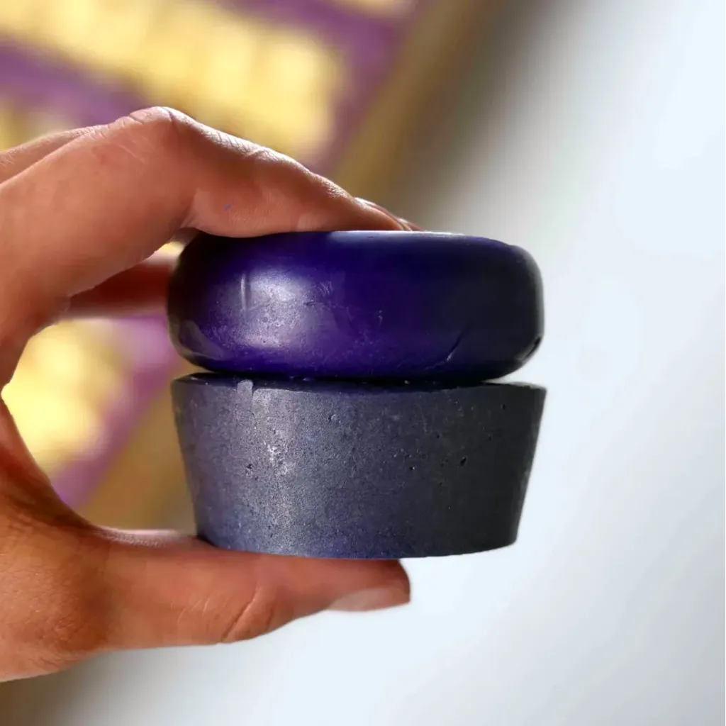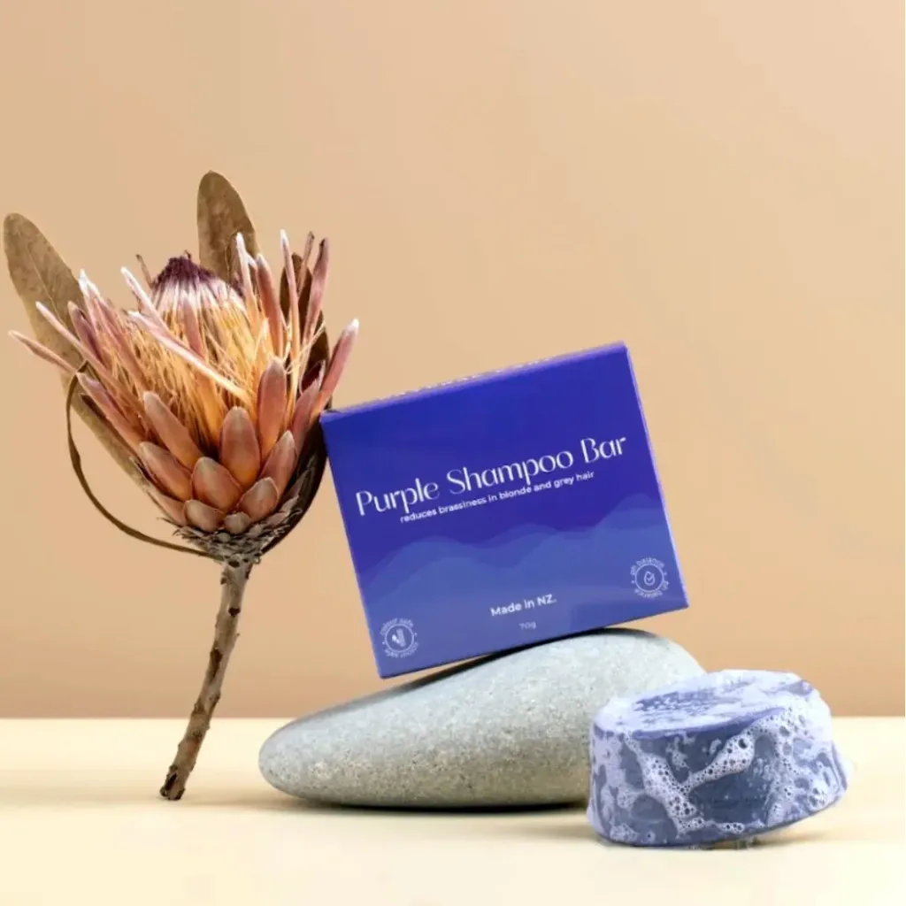 A purple shampoo bar for blonde, grey, and highlighted hair. Neutralises brassiness, boosts brightness, and strengthens strands with rice protein.