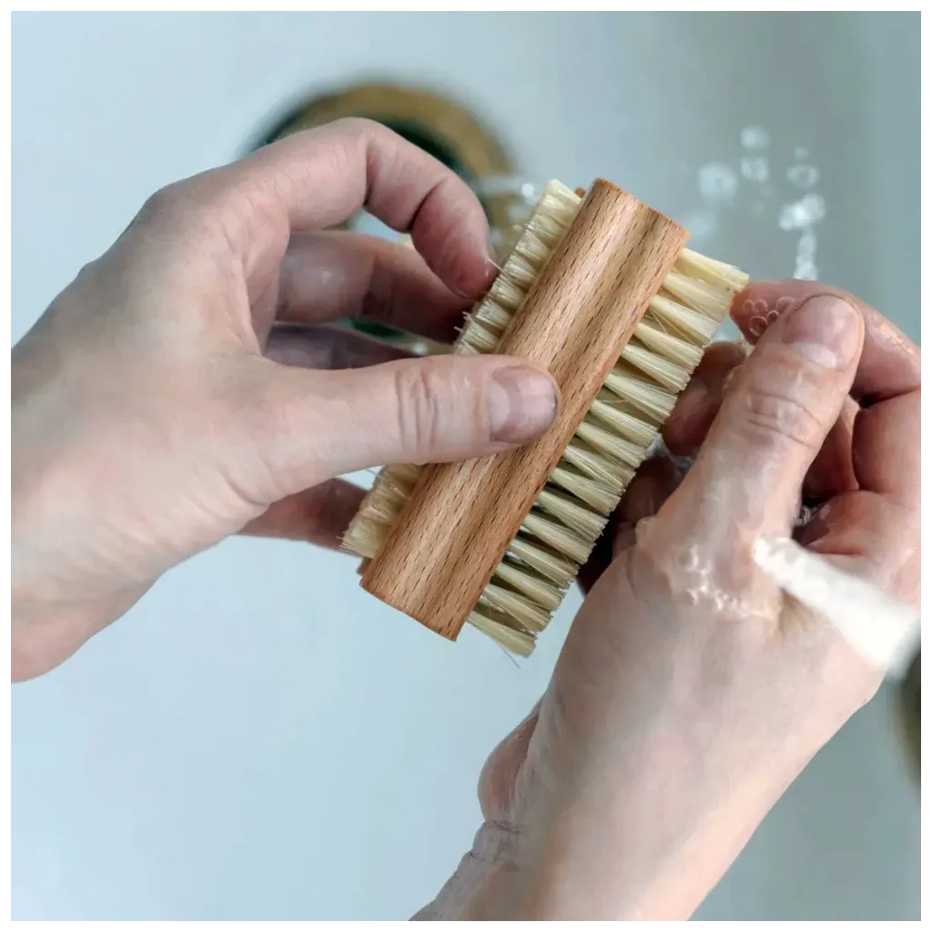 - Durable with a wooden handle and firm natural bristles, this nail brush effectively cleans nails and hands. Made from high-quality materials, it is long-lasting, eco-friendly, and easy to use.
